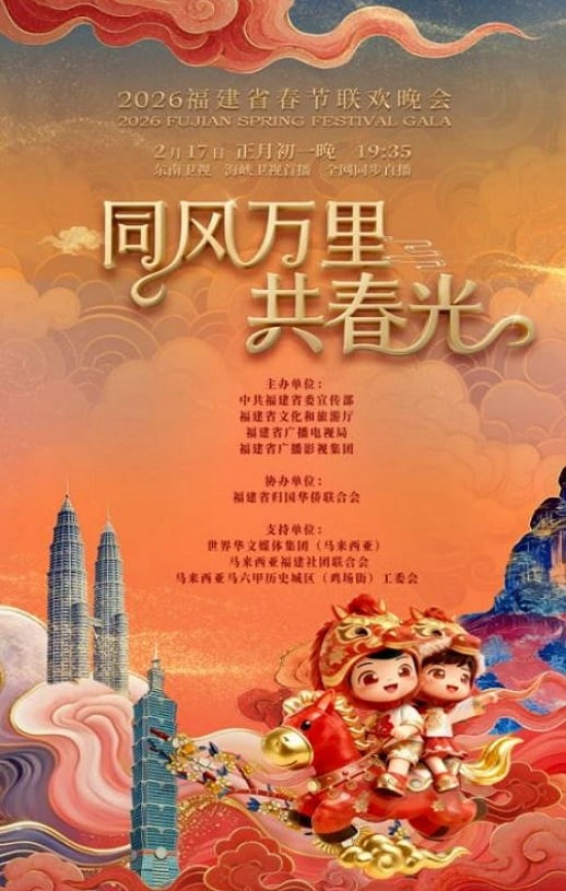 2026年福建春节联欢晚会以“万里同风·自在有福”为主题,以“融合发展”为主线,聚焦“台海”与“华侨”两大核心特色,旨在讲述福建故事,展现福建福文化,传递福建力量,向全世界华人致以节日祝福。晚会首次打造“福建、台湾、马来西亚马六甲三地联动”的春节联欢晚会模式。