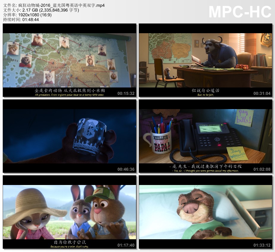 疯狂动物城蓝光国粤台英四语中英双字