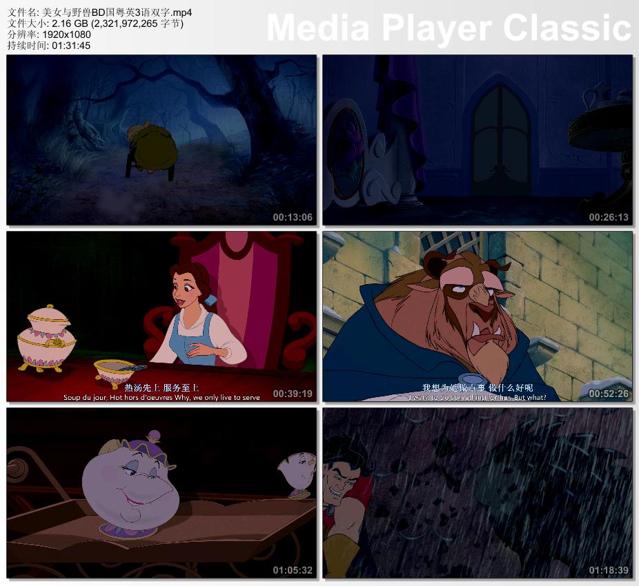 美女与野兽1991蓝光国粤英3语双字