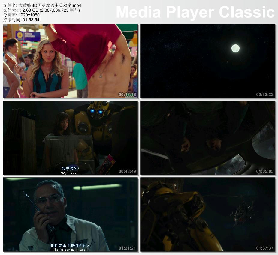 大黄蜂蓝光国英双语中英双字