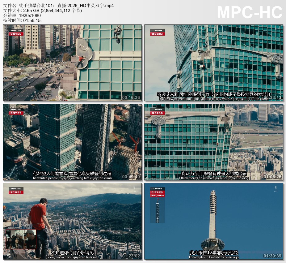 徒手独攀台北101:直播HD中英双字